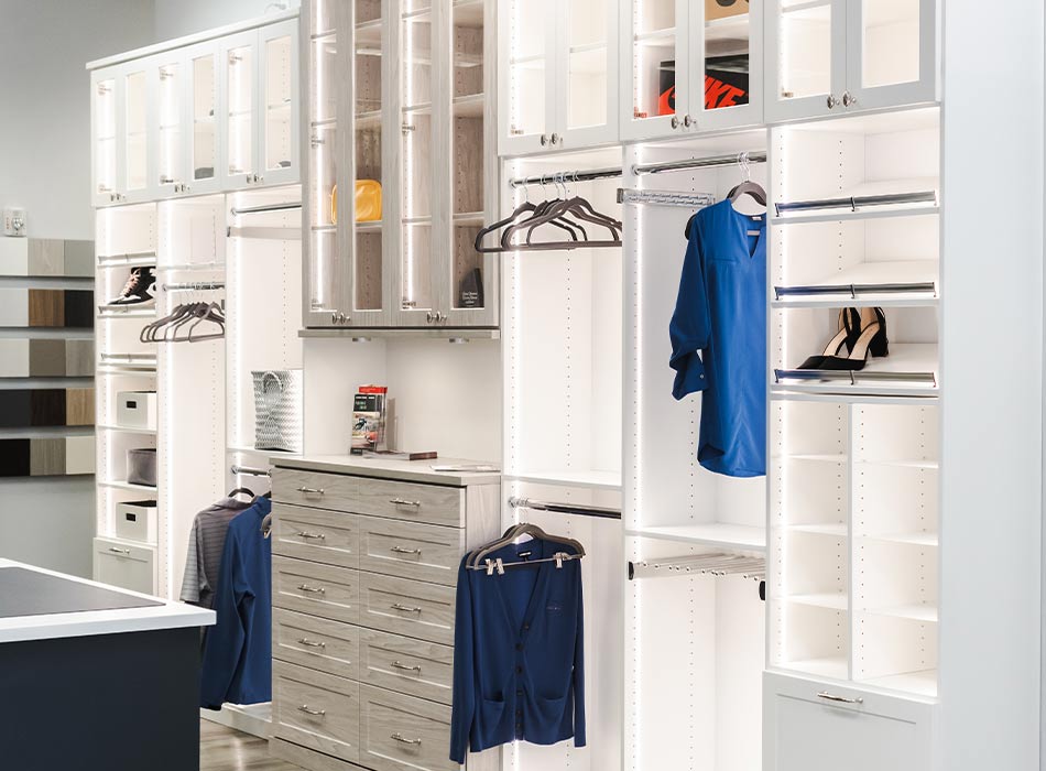 Nestled in the heart of Denver, our Cherry Creek window treatment showroom offers full size displays of window coverings and custom closet designs for Denver homes. Seeing everything in person offers a custom experience so you can find the best products and features to enhance your home. Our showroom boasts expansive exhibits of window coverings and closets, allowing you to intimately engage with the design elements and their intricate features, like dual shades for tall windows, pantry room organization and blackout shades for Cherry Creek homes. Browse a wide selection of fabrics and finishes that resonate with your style, all while engaging in comfortable conversation with an expert designer from our team at Rocky Mountain Shutters, Shades & Closets. We can provide you with guidance and innovative concepts to tackle the distinctive challenges of your home.
